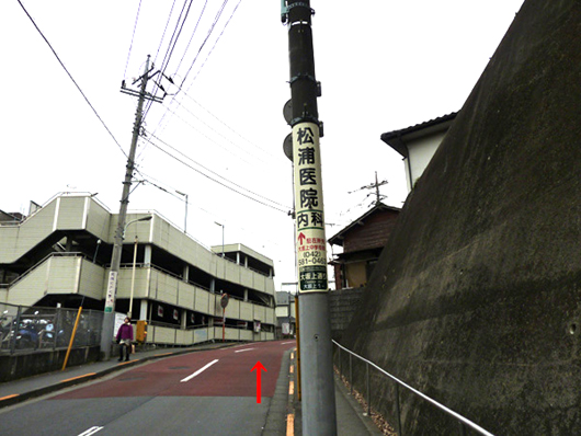 坂を登って、すぐ「当院の看板」があります。直進して下さい。
